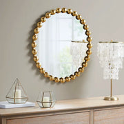 Reimagine your space with our Marlowe Modern & Contemporary Accent Mirror. This round mirror features a stylized spherical iron frame finished with an antique metallic foil, creating a rich sheen and light-speckled, distressed pattern effect. The keyhole hook fixture on the back of the mirror allows for effortless hanging on your wall. Incorporate this wall decor mirror into any room or space, for the perfect combination of modern glam and flair. Wipe clean with damp cloth and handle with care.